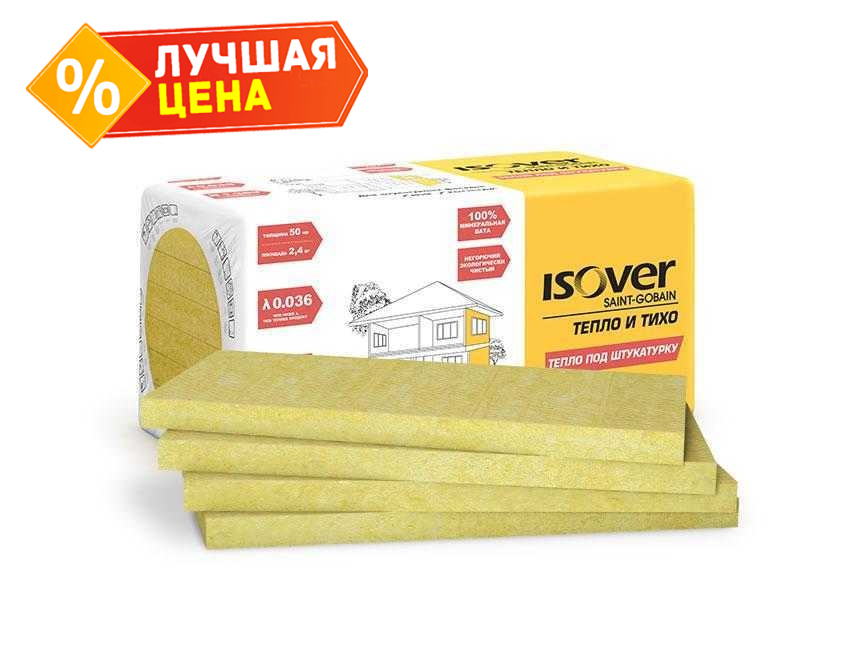 Утеплитель Изовер Тепло и Тихо Тепло под штукатурку 50х1000х600